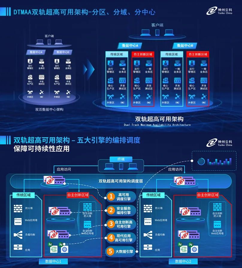 为助力银行业务高质量发展,更好地应对数字经济时代对可持续性的高要求,实现“信创”与“数字化”齐头并进,KS体育-KS娱乐创新性的推出了双轨超高可用架构。该架构在双活数据中心的分区调度基础上,增加信创域和非信创域的分域调度,实行信创域与传统域应用全量部署,使双中心运营变为双中心四区域并行运行,互为多活,将“0到1”的单轨建设道路变为分区分域协同的多活双轨超高可用架构。帮助客户在新架构下,保障“信创”的同时解决性能瓶颈,提升稳定性,保证应用可持续性,最终实现信创区域和非信创区域的平滑过渡,完成国产化替代目标。